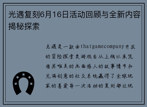 光遇复刻6月16日活动回顾与全新内容揭秘探索